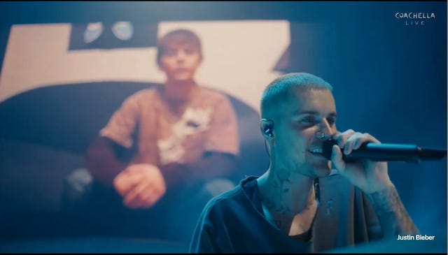 E foi isso que apareceu no Coachella. Não como um espetáculo grandioso no sentido tradicional, mas como algo mais raro, um reencontro. O show foi quase um diálogo entre o Justin de hoje e o menino que ele foi. Ali, com um computador, vídeos antigos, registros do começo de tudo, inclusive do próprio YouTube, ele construiu algo que não parecia apenas performance, parecia cura. Eu não sei você mas, eu, me emocionei.